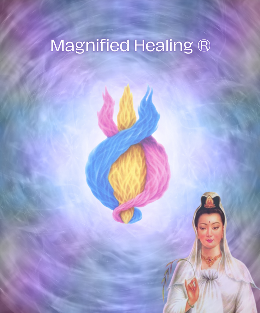 Magnified Healing® é o nome escolhido por Kwan Yin para esta modalidade de cura. Ela nos diz que é a porta-voz de Deus e da Hierarquia para transmiti-la à humanidade neste momento. A energia é cocriada e magnificada com Deus, (a Fonte, o Tudo que É, a Mente Universal), daí o nome “Magnified Healing” do ALTÍSSIMO DEUS DO UNIVERSO”. Kwan Yin enfatiza que esta cura não foi criada por Ela e sim que é um presente de Deus, portanto não chamamos esta modalidade de “Cura de Kwan Yin” ou “Magnified Healing® da Kwan Yin”.